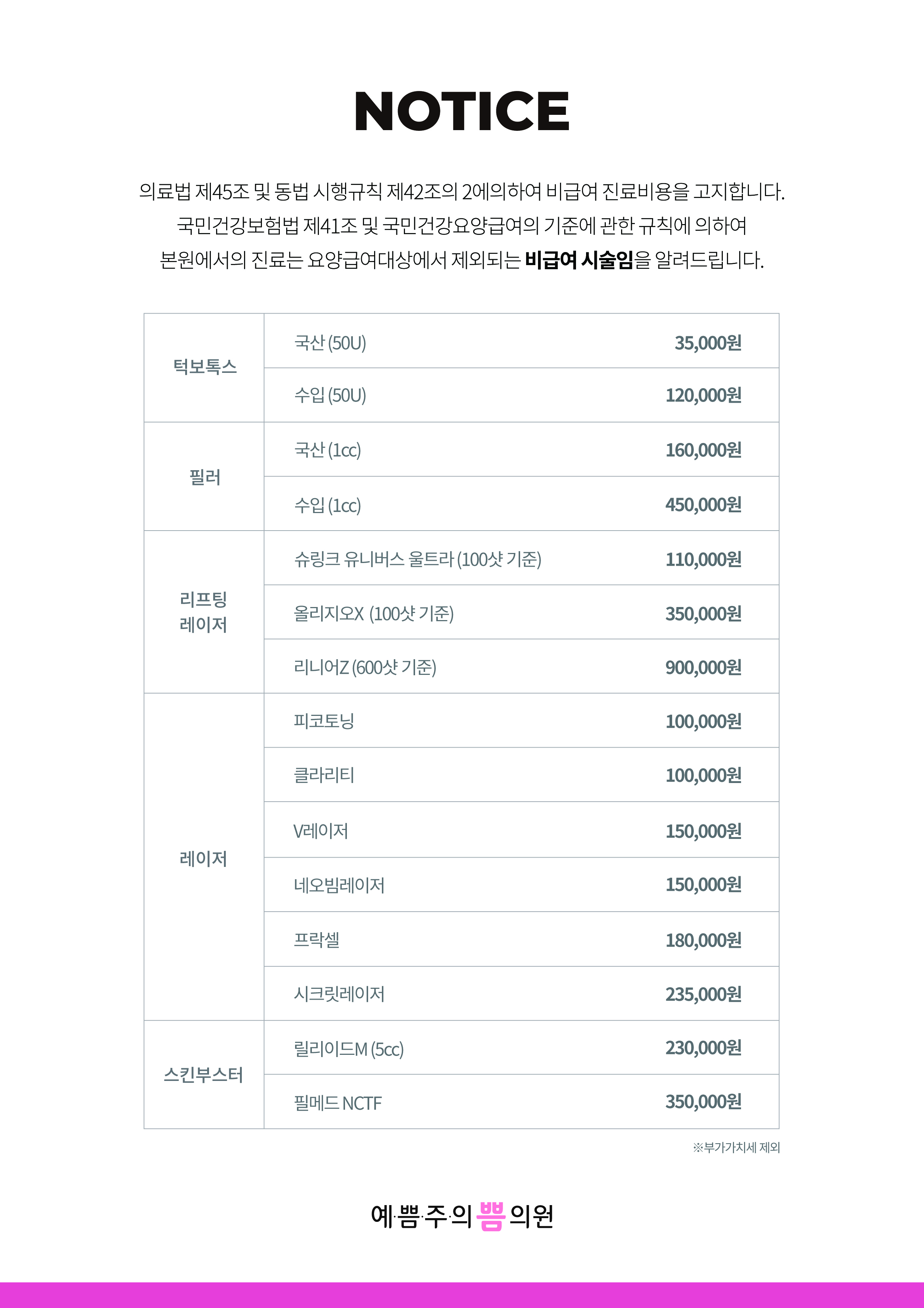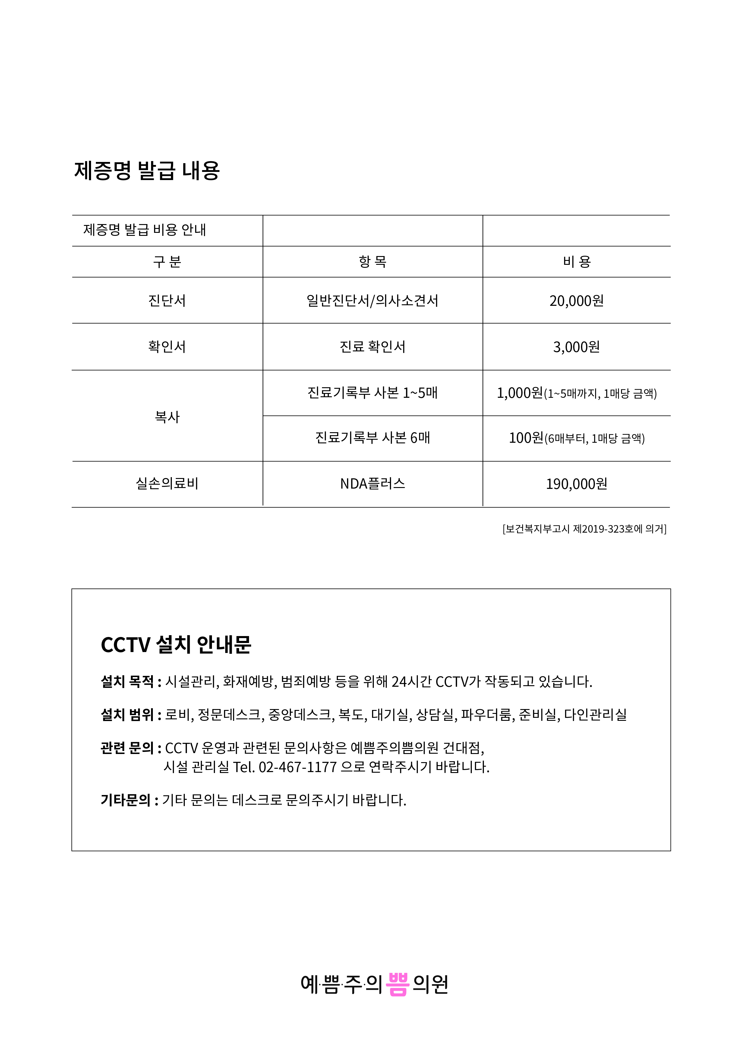 예쁨주의쁨의원 공지사항 게시판이에요